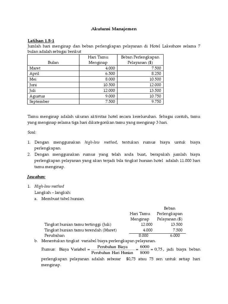 Biaya Variabel Hotel : 18 Contoh Soal Break Even Point Hotel Kumpulan Contoh Soal - Hal ini disebabkan karena biaya variabel berada dalam kendali manajer tersebut, sedangkan biaya tetap di luar kendalinya.. Dapat digunakan pada populasi yang berkaitan dengan dimensi waktu, misal pasien yang datang ke rumah sakit. 04.07.2014 · b.biaya bahan bakar setiap 2000 mil adalah $600. Jika populasi agak homogen terkait dengan variabel yang diteliti. Sistematic random sampling (1) sampel diambil setiap selang tertentu (k=n/n), di mana pada selang pertama dilakukan pemilihan secara random; Lokasi mempunyai pengaruh besar pada laba keseluruhan perusahaan.